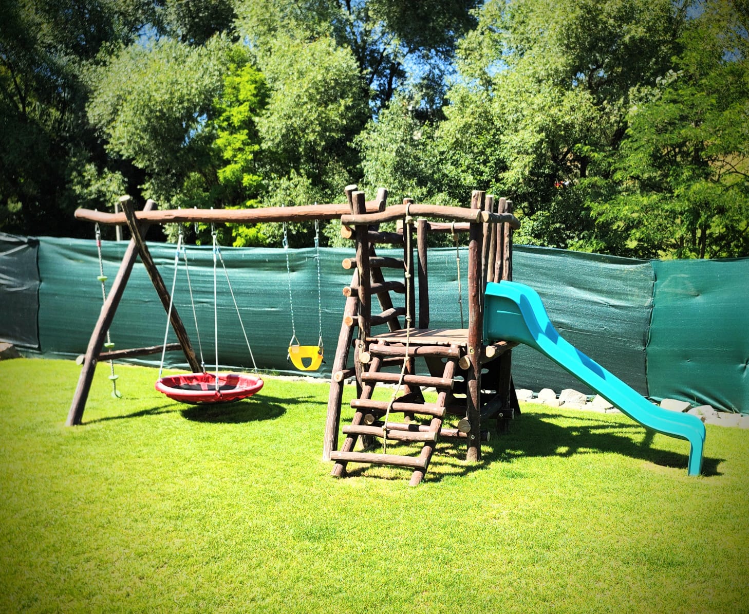 K dispozícii je aj altánok so sedením a priestorom na grilovanie, vonkajšia pec na opekanie a detské ihrisko.