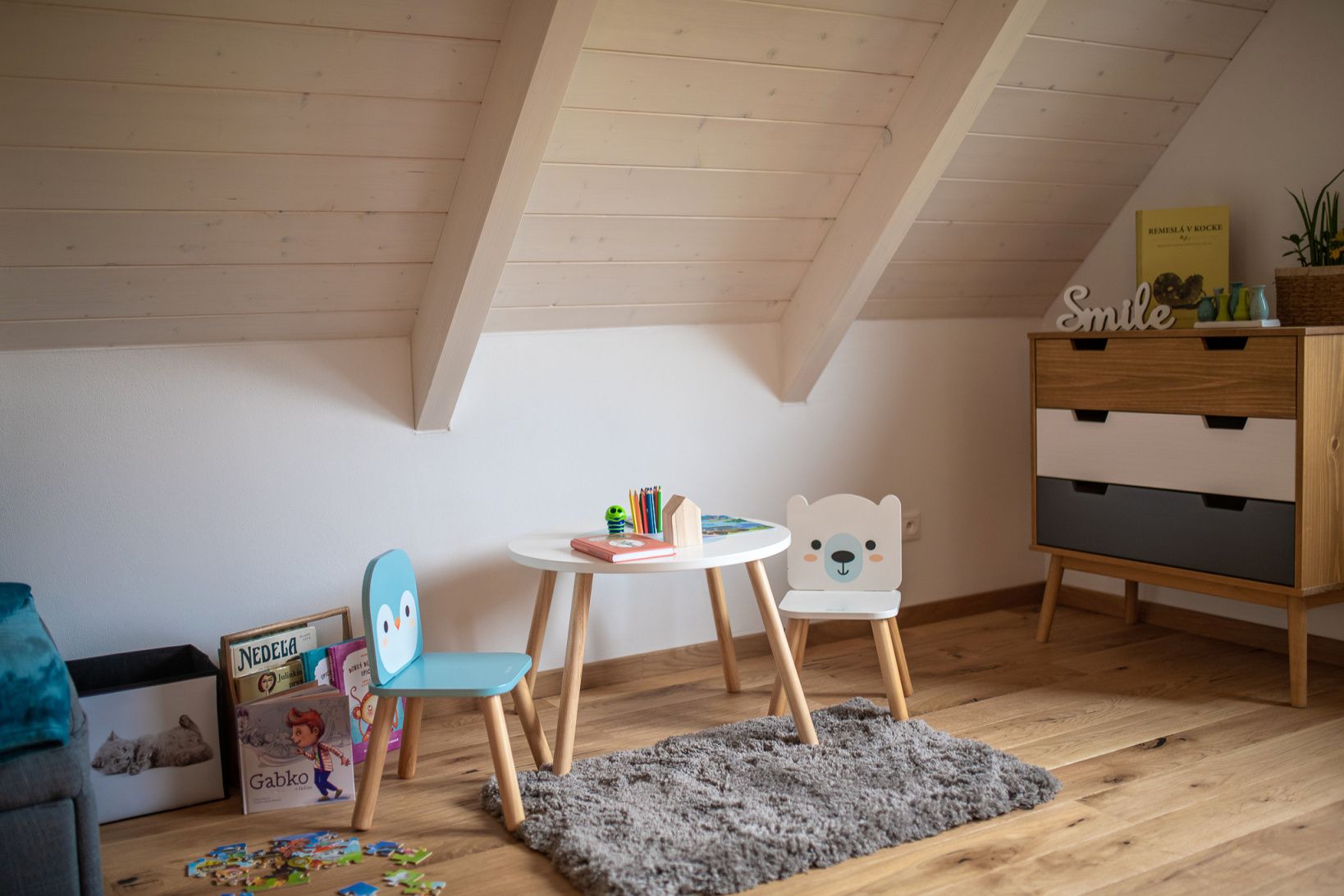 Mysleli sme aj na tých najmenších, v izbe s manželskou posteľou sme umiestnili detskú postieľku a v druhej izbičke nájdu Vaše ratolesti milý detský kútik s detským stolíkom, stoličkami, knihami a hračkami.