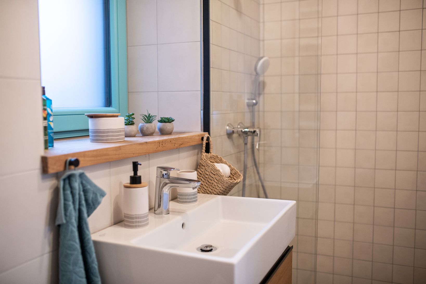 V kúpeľni je toaleta, umývadlo so skrinkou a miestom na odkladanie drobností a sprchovací kút oddelený sklenenou stenou.  Samozrejmosťou je základné vybavenie, ako toaletný papier, tekuté mydlo, čistiace prostriedky do WC aj kuchyne, hubky na riad, utierky, uteráky, aj posteľné prádlo.